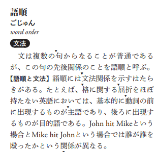 言語学に関して分からないことがあればとりあえず引いてみて、まずは基本的なところを概念として理解してから、もう少し詳しい専門書を参照したり、言語学大辞典で引けばよいのです。