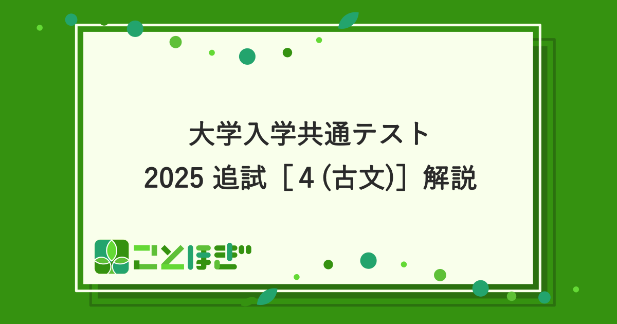 大学入学共通テスト 国語2025追試[4(古文)]解説
